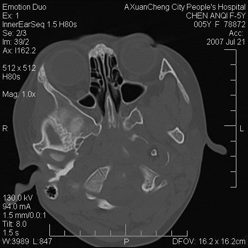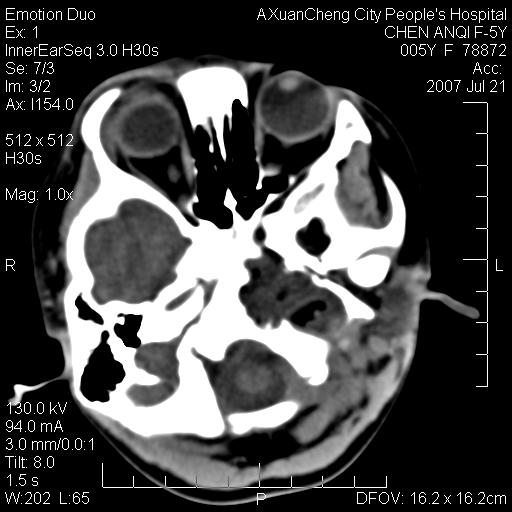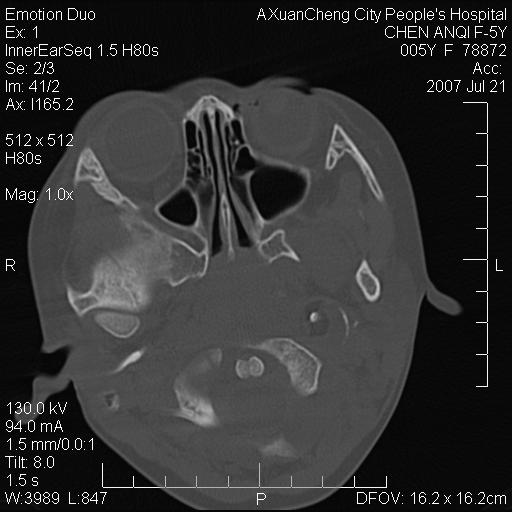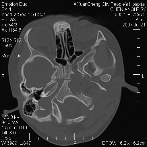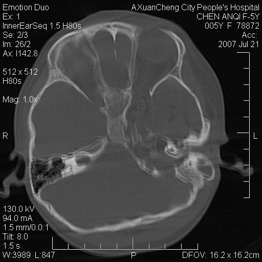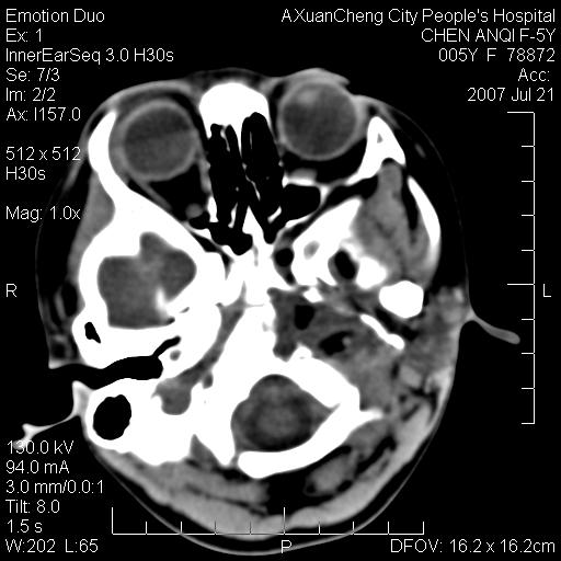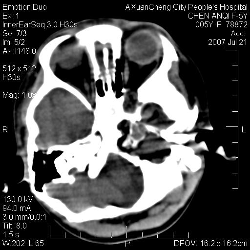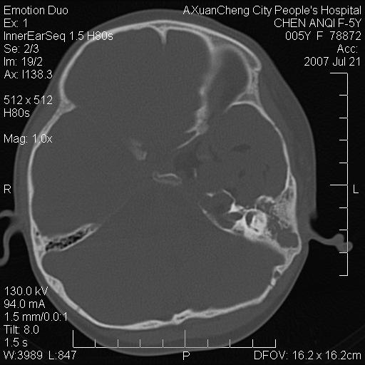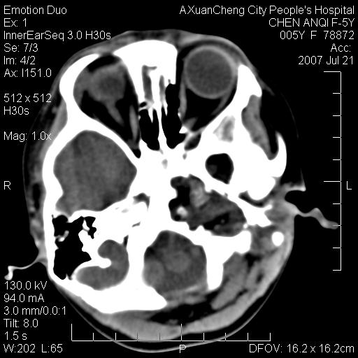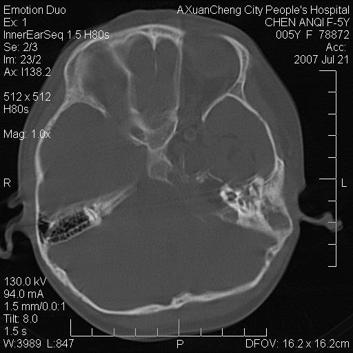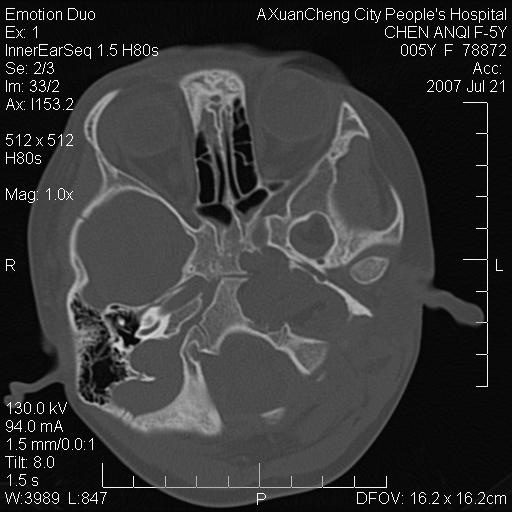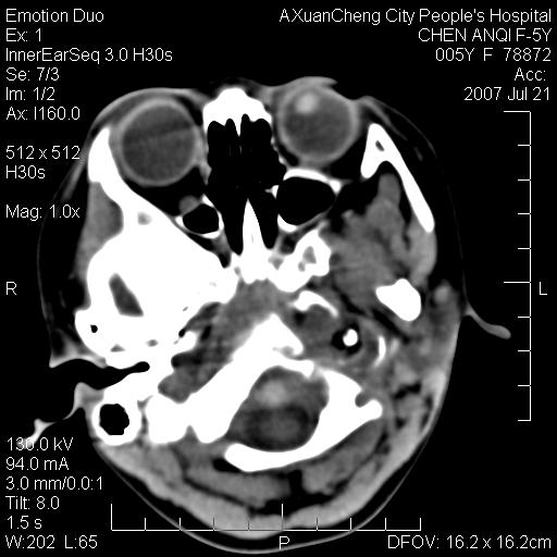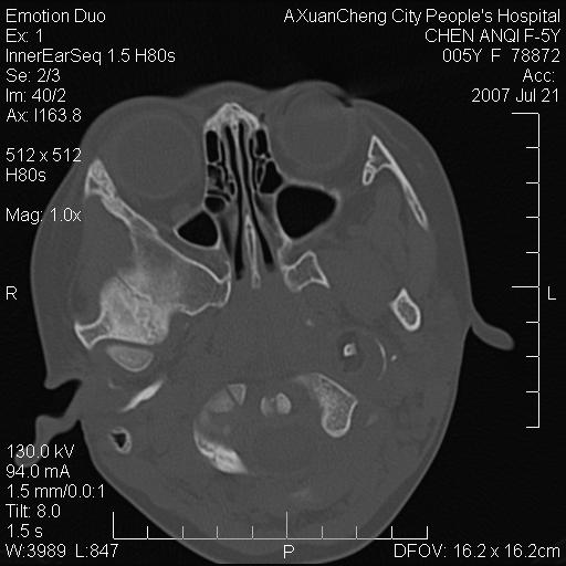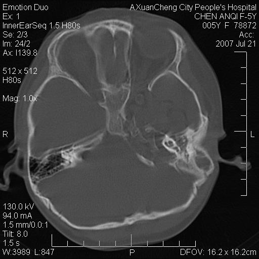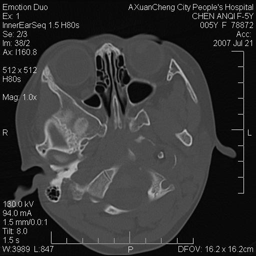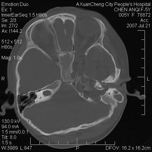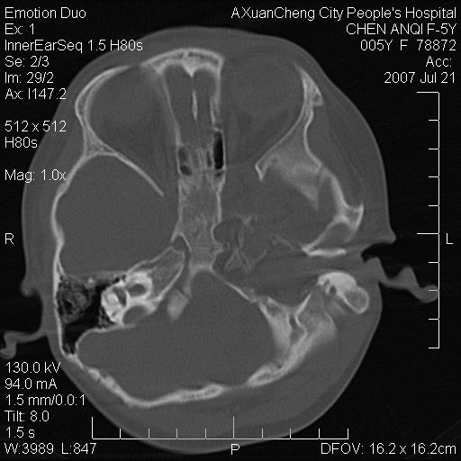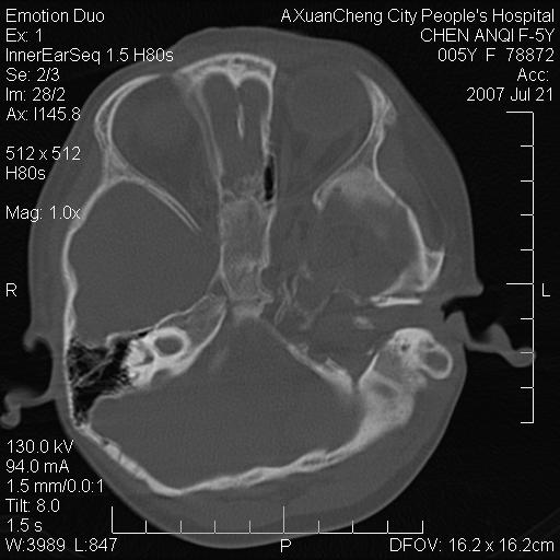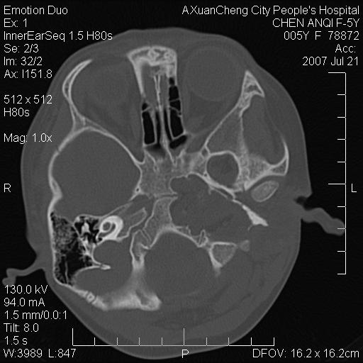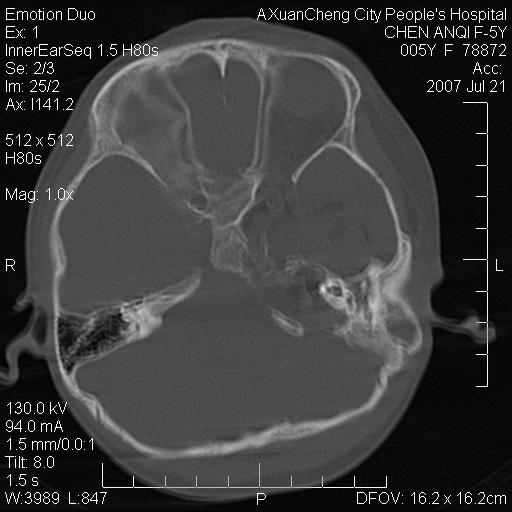 标题: 回复:ped0273:5岁,左耳流脓痛疼一周,颅底骨质破坏