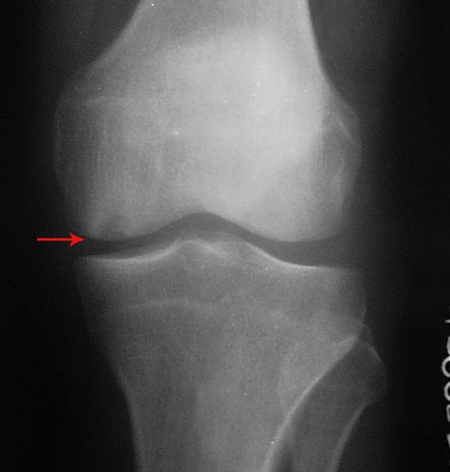 男,65岁,左膝关节痛疼半年,软组织稍肿,活动尚可。