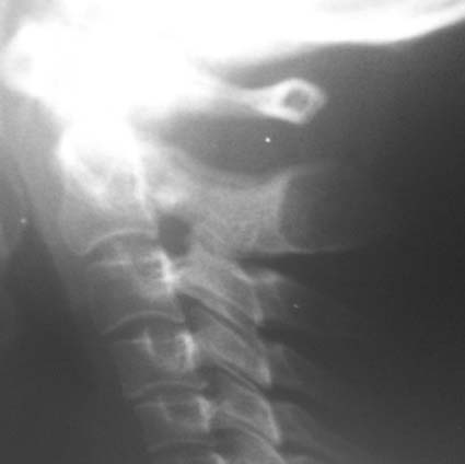 女,45岁,近来感颈部疼痛,头晕,夜不能寐,按之枢椎棘突,感有硬结感,疼痛,骨科怀疑骨囊肿,拟手术,请大家帮忙看一下,是否是正常的?