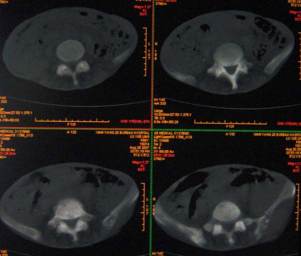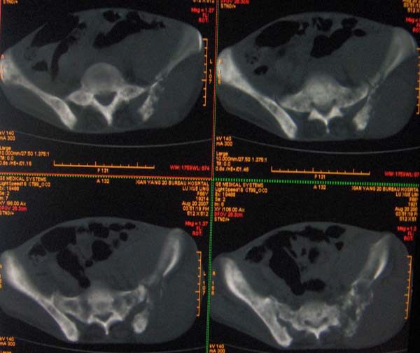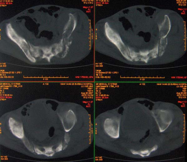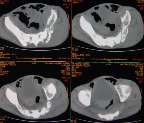 以下是引用ybing在2007-8-22 20:31:00的发言:[br]左侧髂骨溶骨样破坏;软组织肿块形成;其内未见肿瘤骨考虑纤维肉瘤或滑膜肉瘤不除外转移瘤