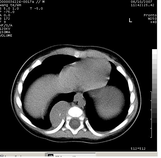 图有点少,但能看出越往下似乎越大,我认为除了考虑神经源性肿瘤,还要考虑膈疝可能