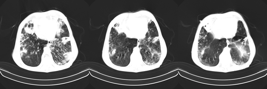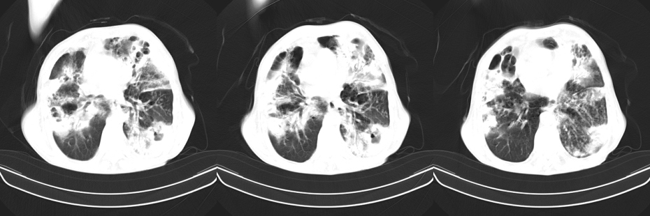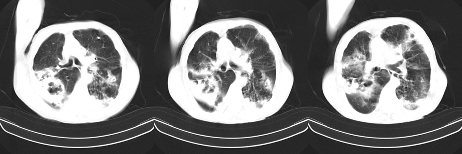 以下是引用mzh123在2007-8-26 19:58:00的发言:[br]两肺弥漫性斑片改变,其中可见大小不等之不规则空洞,结合既往病史还是考虑结核复发及感染。