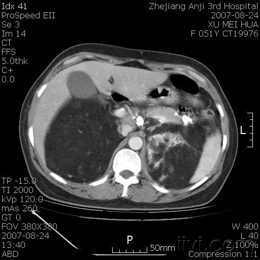 以下是引用还珠格格在2007-8-27 10:19:00的发言:[br]双侧肾脏形态失常,可见巨大的以低密度脂肪为主的混合性肿块,占据中下腹,残留的肾组织轻度强化,增强后肿块内实质部分呈峰窝状强化,低密度区无强化。另左侧肾盂轻度积水。根据病史 考虑 双肾血管平滑肌脂肪瘤可能性大。[br] 鉴别诊断 1、脂肪瘤,境界清楚,肿块内完全是脂肪,几乎没有软组织成分; 2、畸胎瘤:罕见,除有软组织成分外,另一特征是有钙化或骨化影组织。