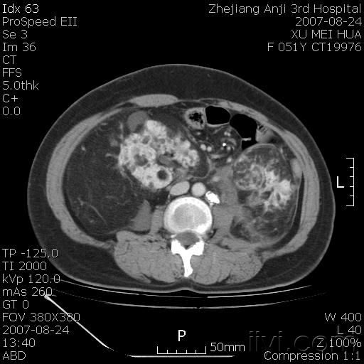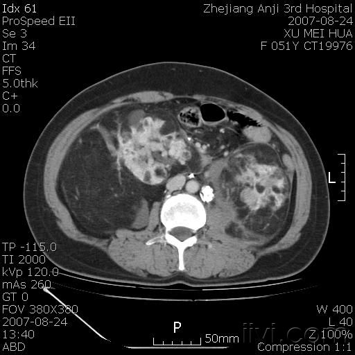 以下是引用鬼影在2007-8-27 10:31:00的发言:[br]双肾血管平滑肌脂肪瘤可能性大。