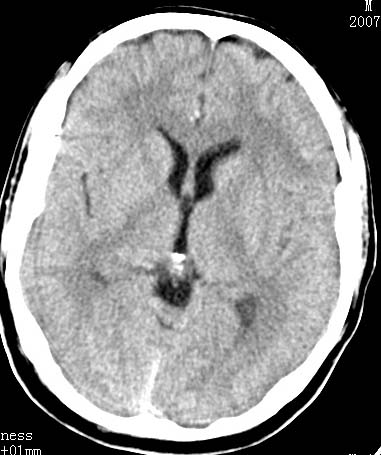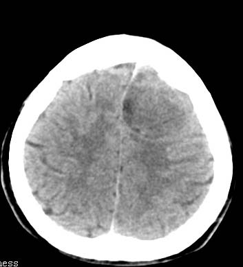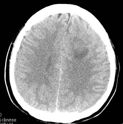 以下是引用jiangjing在2007-8-29 14:33:00的发言:[br]左侧额叶不均匀密度影[低密度为主,边缘见等密度环环绕]占位效应明显,界限不清。支持:占位性病变,建议增强! [br][br]