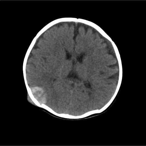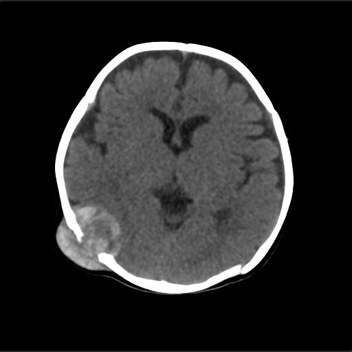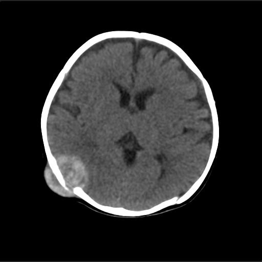 f2m出生已来可见右侧枕部见包块,质地软,无外伤史。包块处ct值16-67hu,大小约3.1x3.2cm左右。