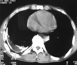 右测包裹性积液并胸膜钙化,结核性脓胸还是胸膜肿瘤转移,还需要穿刺抽液