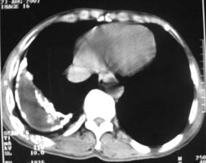 右侧包裹性积液并胸膜钙化,性质还是结合穿刺细胞学检查的好,结核性、化脓性均会有钙化。