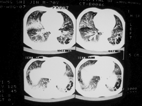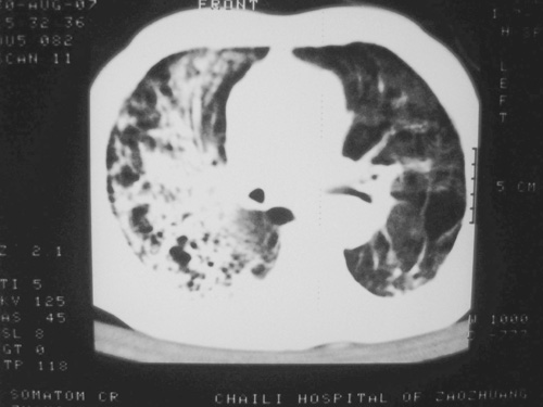 以下是引用余辉在2007-8-30 22:16:00的发言:[br]患者病程较短,有明显咳嗽发热症状,结合病史考虑矽肺合并以间质为主的肺感染,肺泡癌先放下,抗炎再说