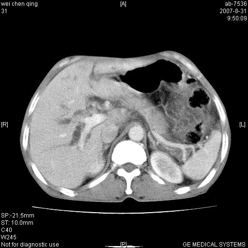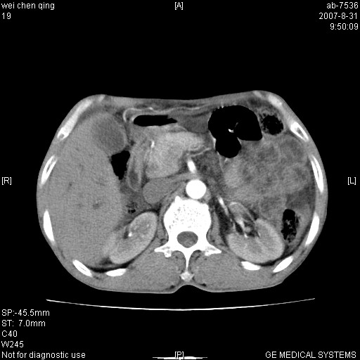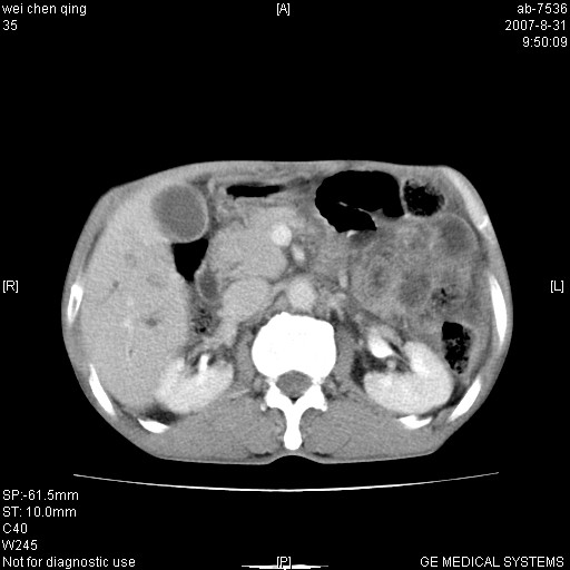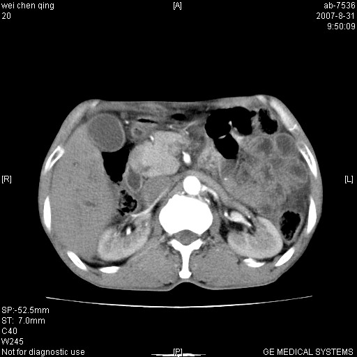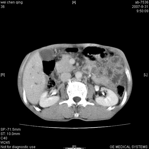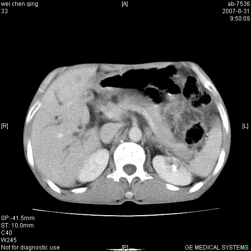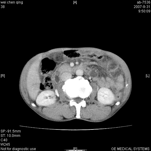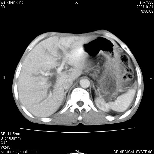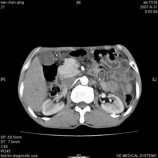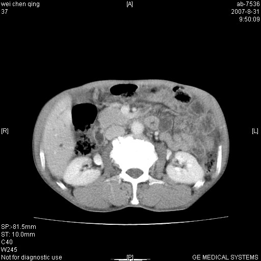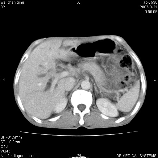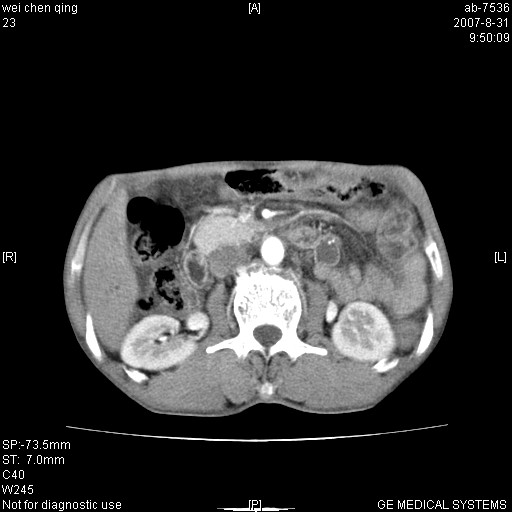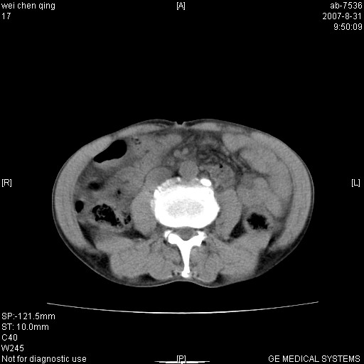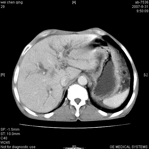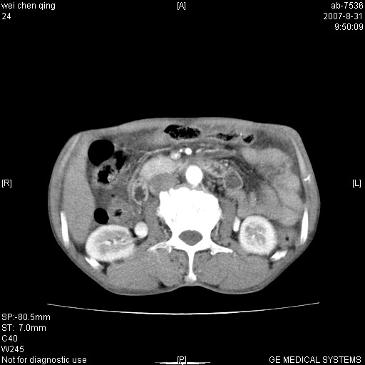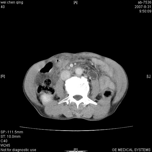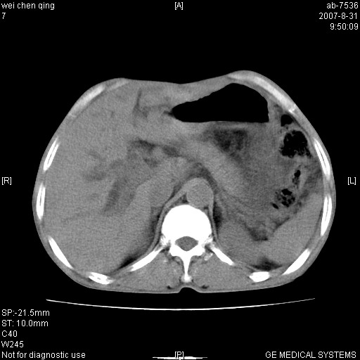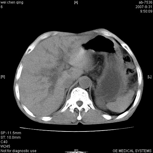 以下是引用zyyzzy在2007-8-31 14:34:00的发言:[br]该病人肝内胆管扩张,胆囊及胆总管未见明显扩张。在倒数第9层图像上可看到左右肝管结合部(肝总管)有软组织影,此处应薄层扫描。考虑肝总管占位(ca)、腹水。[br]