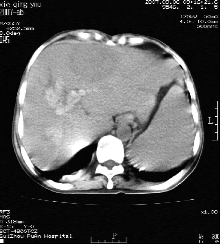考虑肝内胆管多发结石引起的肝内局部炎症,这样可以解释2005年肝右叶病灶的吸收和左叶新病灶.