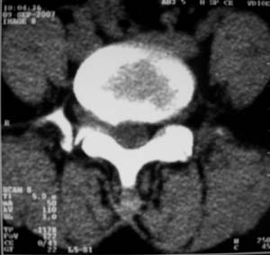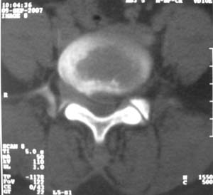以下是引用朱亮在2007-9-9 19:55:00的发言:[br]建议薄层扫描,还应考虑椎间盘突出