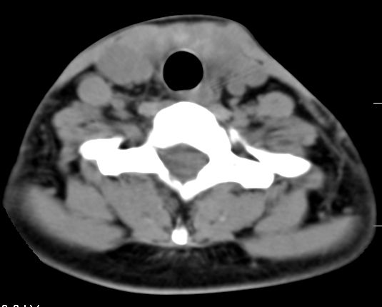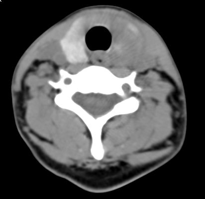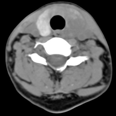 标题: CT9717:F、30Y、颈部左侧包块半年,压痛.患者拒绝作增强。
