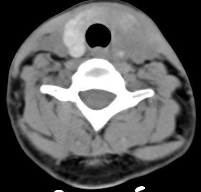 标题: 回复:ct9717:f、30y、颈部左侧包块半年,压痛.患者拒绝作增