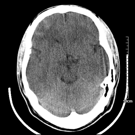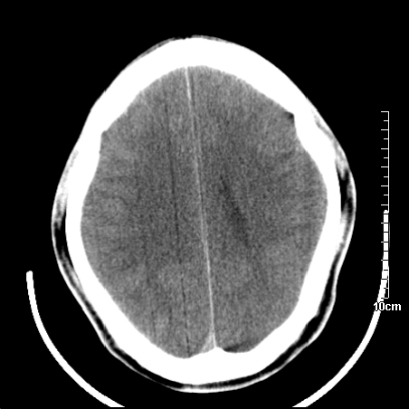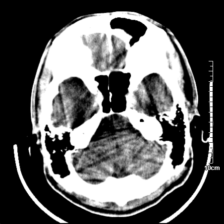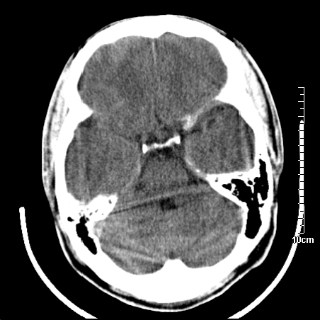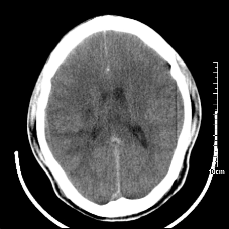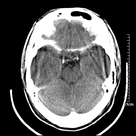 因病人拒绝进一步检查,反复做工作后,病人做了腰穿,脑脊液化验显示有红细胞,呈现轻度红色