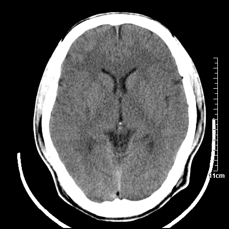 右侧放射冠可见点状低密度,可疑腔隙性梗塞