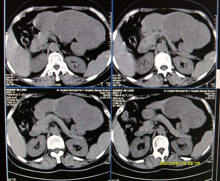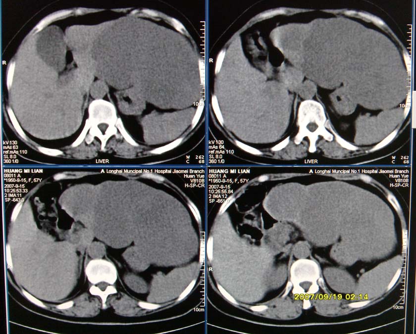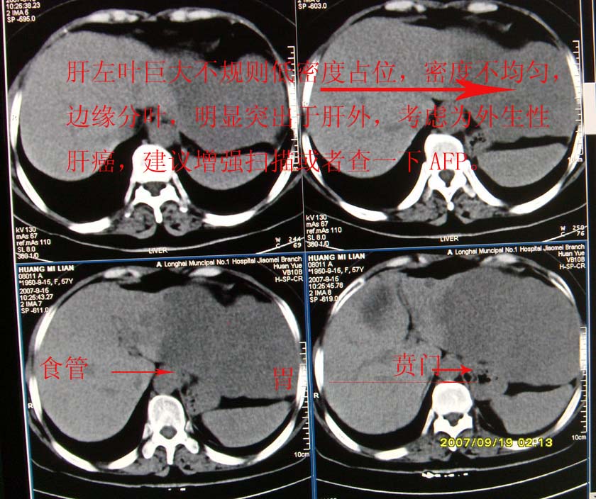 以下是引用davisxuyong在2007-9-19 16:29:00的发言:[br]肝左叶大片状低密度灶,肝癌待排,建议增强。