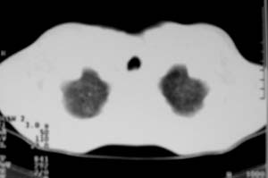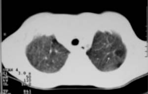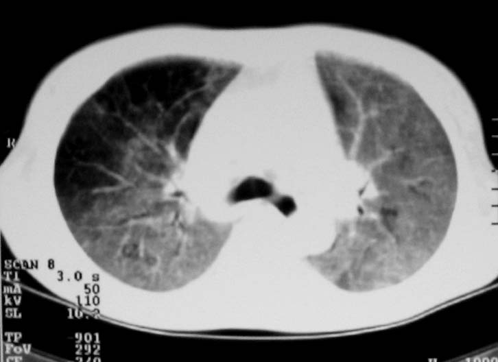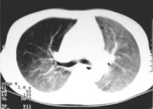 以下是引用yangzongshan在2007-9-20 18:29:00的发言:[br]两肺毛玻璃样改变,其内可见肺纹理影,无胸腔积液,故考虑肺泡蛋白沉积症