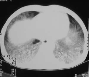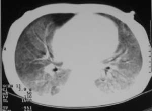 以下是引用zjzjr在2007-9-20 12:29:00的发言:[br]双肺磨玻璃改变,考虑肺水肿.