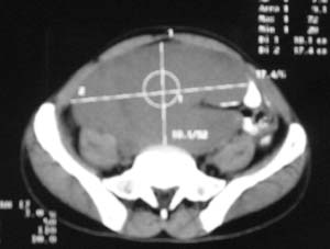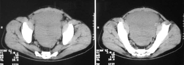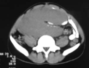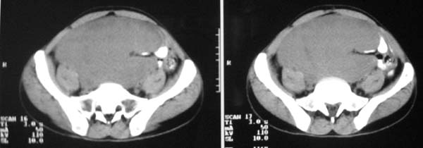 以下是引用zjzjr在2007-9-27 22:20:00的发言:[br]肠腔受推移,未见明显扩张及液平,所以考虑是肠外病灶, 间叶源性肿瘤?脂肪瘤?建议增强。