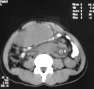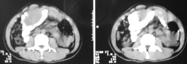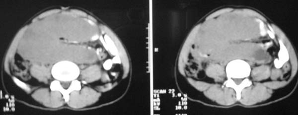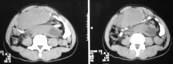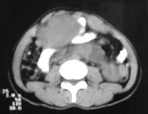 以下是引用余辉在2007-9-27 22:24:00的发言:[br]暂考虑肠道间质来源肿瘤如小肠平滑肌肉瘤/瘤可能,应该增强
