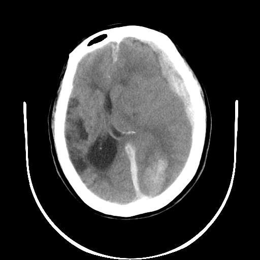 以下是引用gaoshengjiang在2007-10-7 9:18:00的发言:[br]左枕叶脑出血,左额颞顶部及纵裂硬膜下血肿,蛛网膜下腔出血,右颞叶脑梗塞。出血原因:患者年龄较大可能为动脉硬化或血管畸形?建议进一步临床检查。