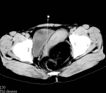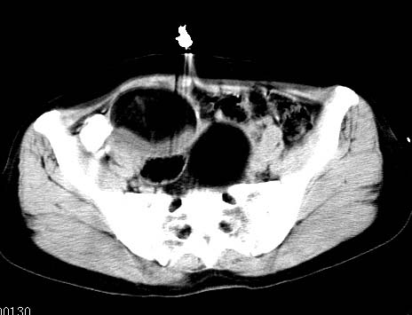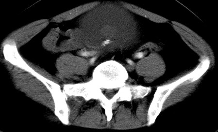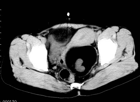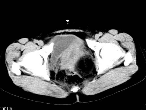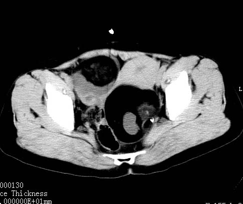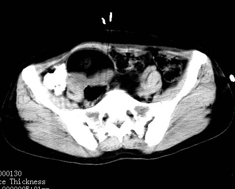 盆腔内低密度为主混杂等密度及少许囊样与班状钙化影,如果做了肠道准备就好了。支持畸胎瘤。当然做mri会更好
