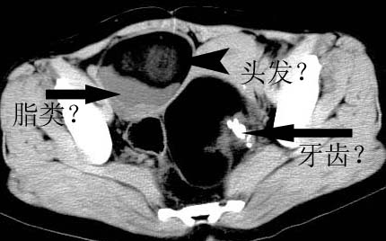 盆腔多发畸胎瘤,较为典型