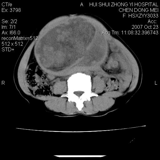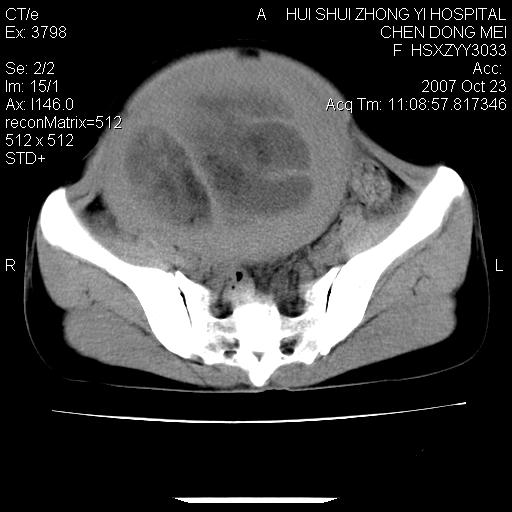 标题: CT10156:女.43岁,发现中下腹部包都块2年