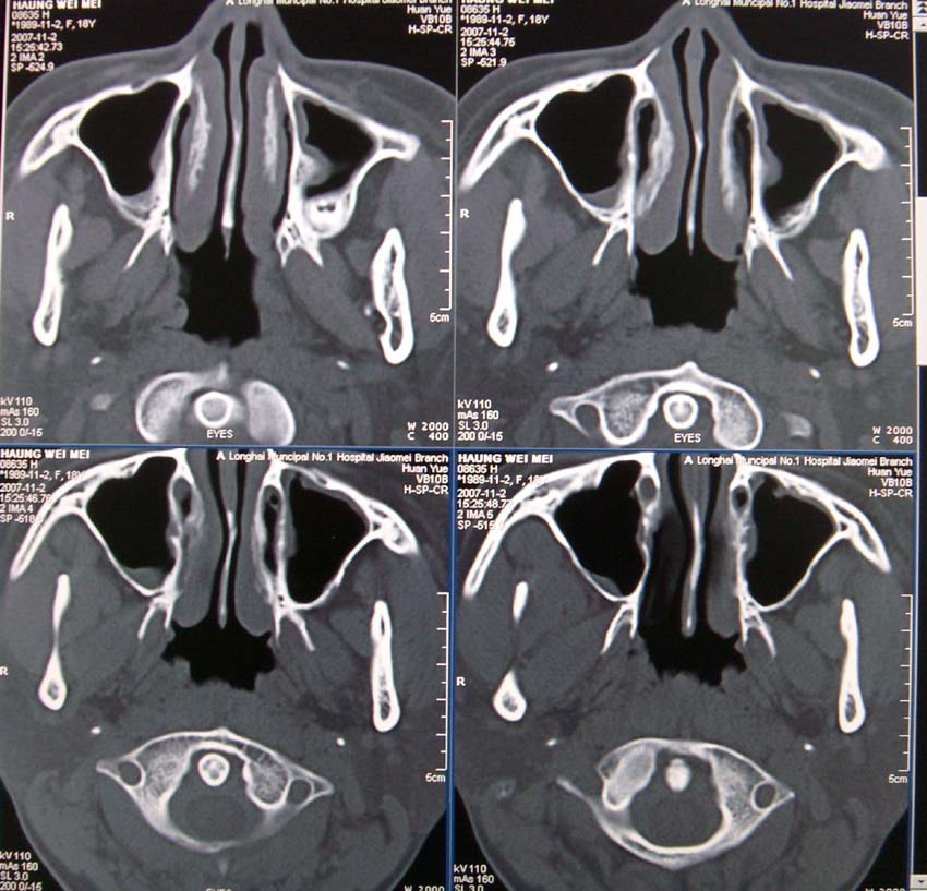 以下是引用gaoshengjiang在2007-11-4 12:00:00的发言:[br]两侧上颌窦粘膜增厚,为慢性炎症;余为正常表现。