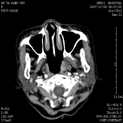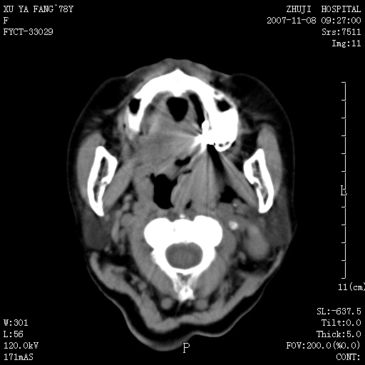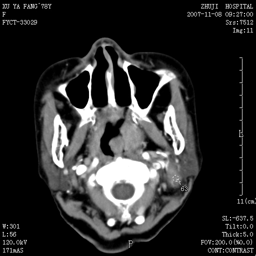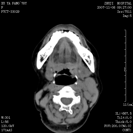 标题: CT10380:女性,78Y,扁桃体病变,请会诊.有病理.