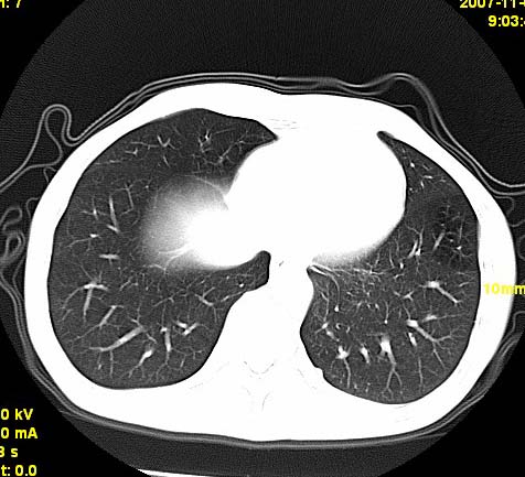 以下是引用卜一在2007-11-12 5:59:00的发言:[br]病灶本身不像转移,不知有没有以前的胸部ct片,若有,则可以对比以下,若是新出现病灶,应高度警惕“转移”的可能![br]