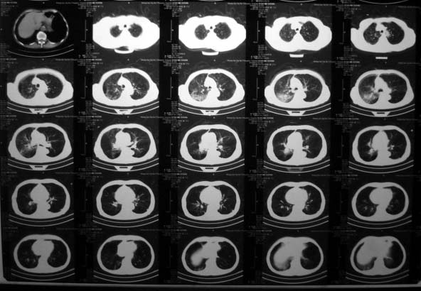 男,77岁,血丝痰一月,消炎治疗后血痰消失。