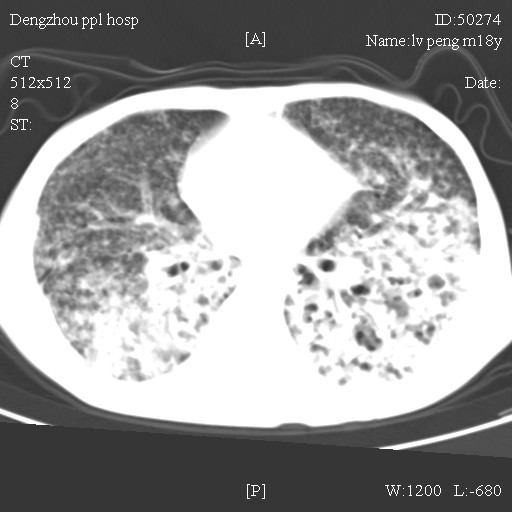 以下是引用卜一在2007-11-19 16:44:00的发言:[br][br] [br] 双肺布满大片状实变及网格状结节影,内参杂大小不等的气囊及空气支气管征,心脏增大。考虑:1 全身结缔组织疾病—系统性红斑狼仓?2 肺泡蛋白沉积症合并感染![br] [br]
