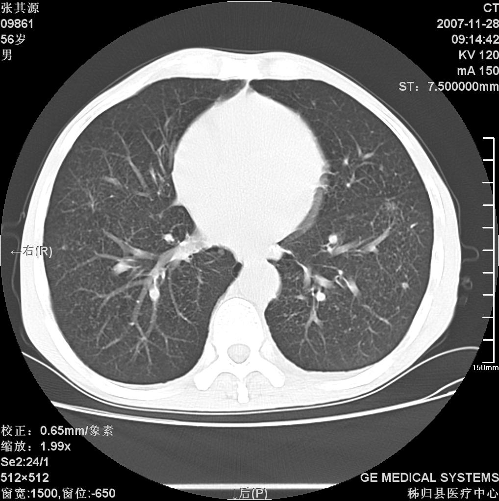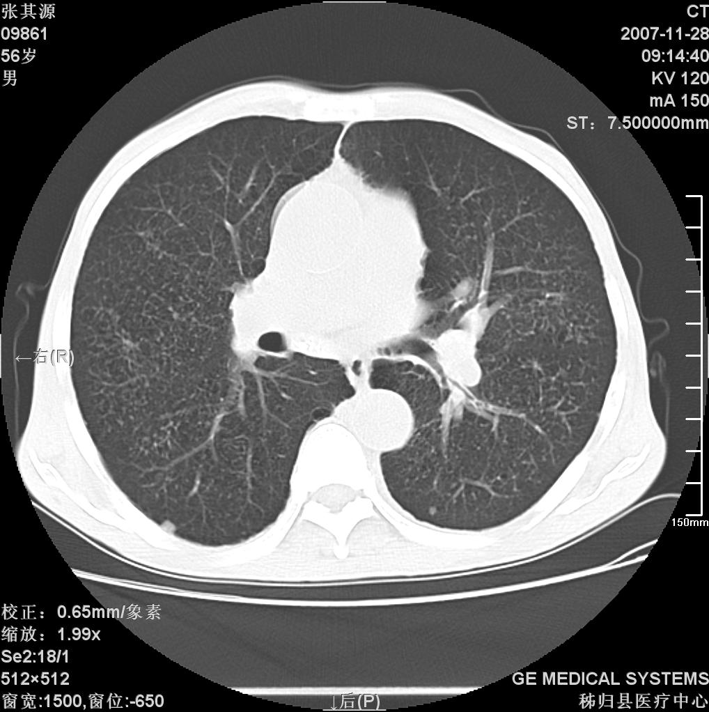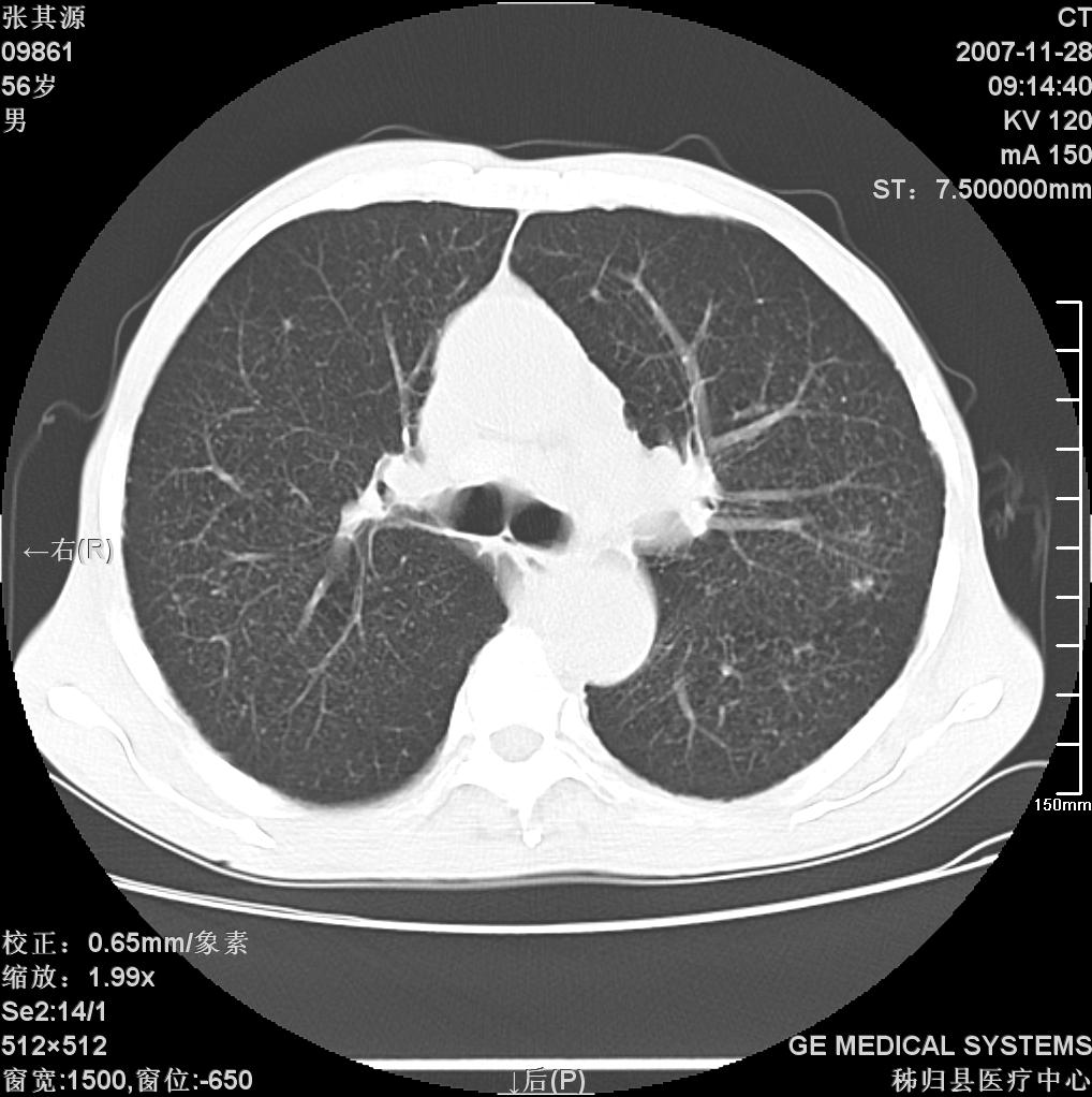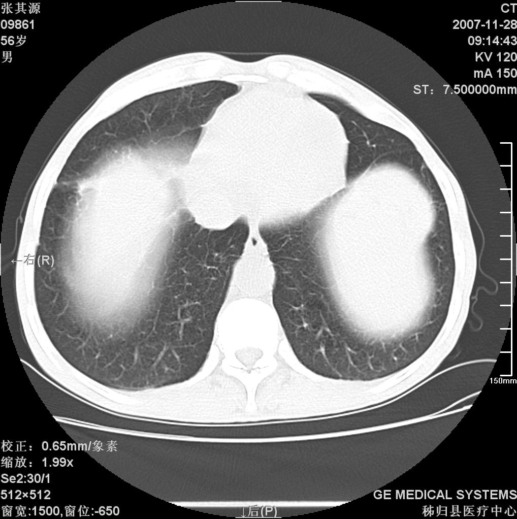 补充一下,该患者没有与尘肺相关职业史。请大家帮忙会诊一下,外科医生打算为其做胆总管肿瘤做手术的,现在在等我们的结果。谢谢各位了。