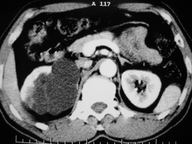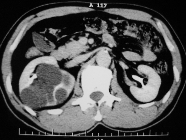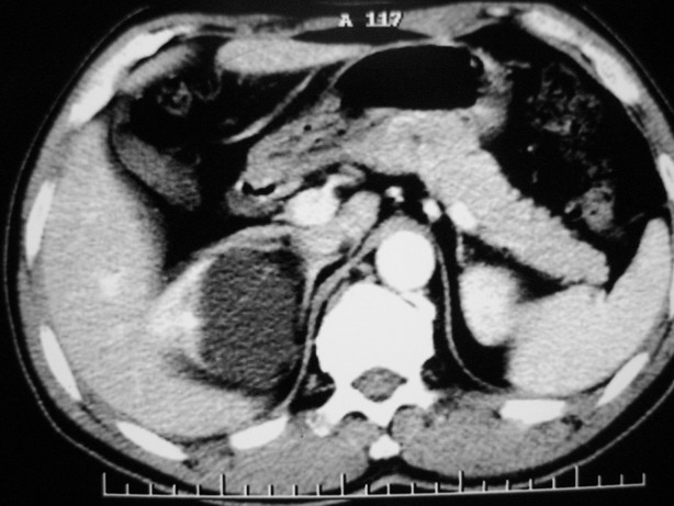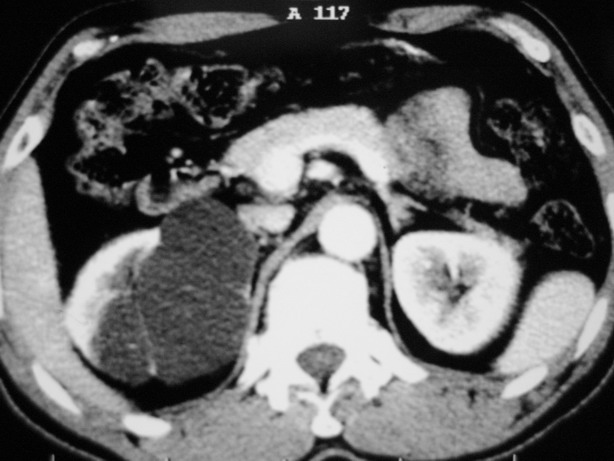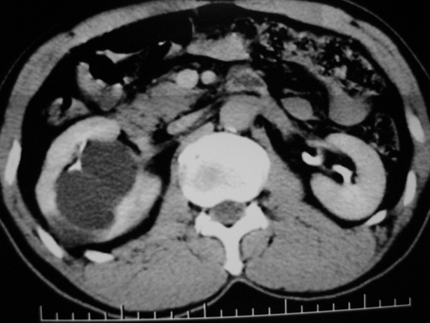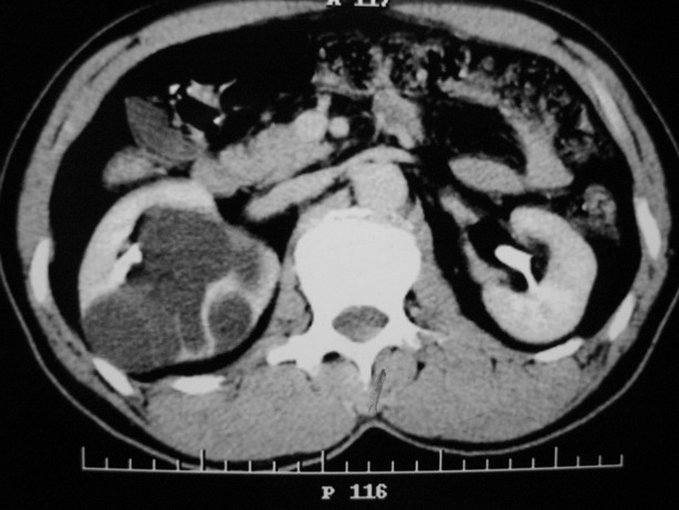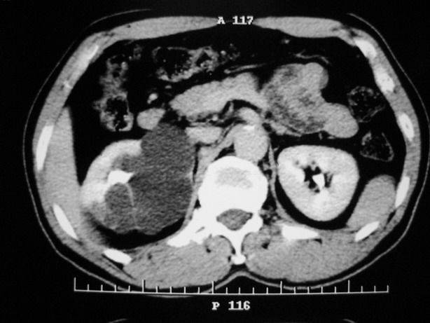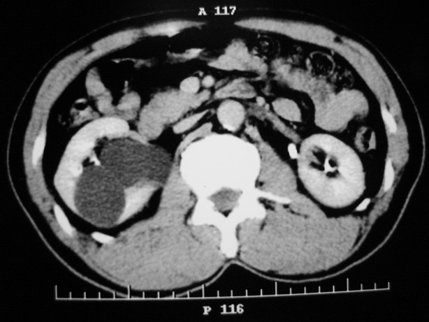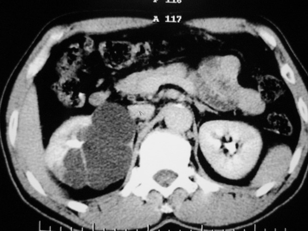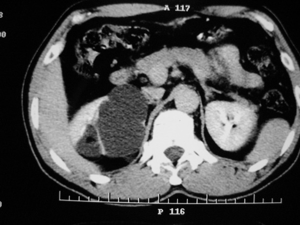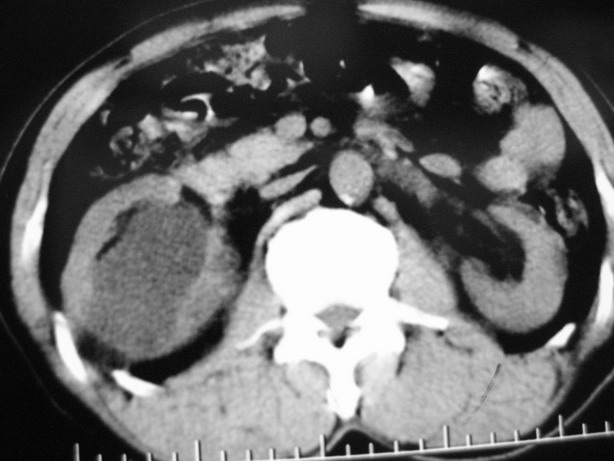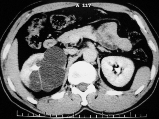 CT10772:男性,48,右肾盂旁多囊性占位!