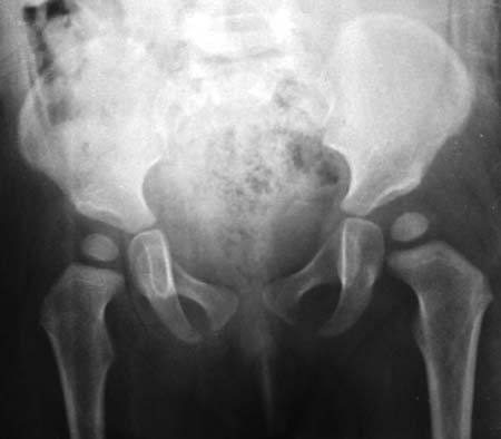 前后两张片子左右没弄混吧?第一张右髋沈通氏线较左侧差,第二张反之。半年时间小儿的骨头(闭孔、股骨头骨骺)长得挺快的。