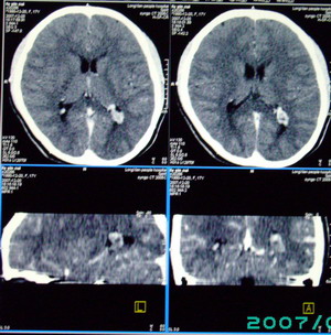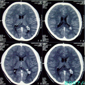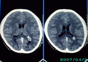 以下是引用九目段在2007-12-24 14:55:00的发言:[br]1,年轻女性[br]2,ct表现:左侧脑室三角区可见一不规则小明显强化的结节,中央见小低密度,侧脑室无扩张。[br]分析:[br]常见的有三种肿瘤好发三角区:[br]1,脉络丛乳头状瘤,好发于年轻者,明显强化,实性,分泌脑脊液,常伴有侧脑室扩大,肿瘤较小可以脑室扩大不明显,不能排除,但小结节尚不易形成坏死腔。[br]2,室管膜瘤,好发于儿童及青少年,明显强化,易坏死,大时伴脑室扩张。[br]3,脑膜瘤,明显强化,圆形,界请,无脑积水,一般不坏死。[br]诊断:[br]左侧脑室三角区结节,考虑室管膜瘤可能性大,不排除脉络丛乳头状瘤和脑膜瘤(因病史较长)。[br][br][本贴已被 九目段 于 2007-12-24 15:13:35 修改过]