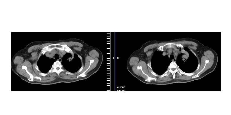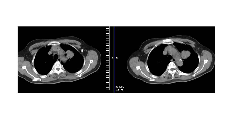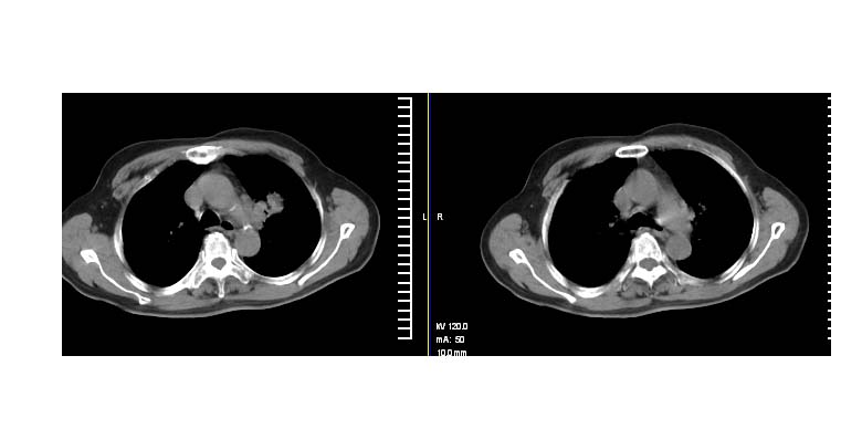 以下是引用xuhuihong在2007-12-28 15:02:00的发言:[br]左上肺软组织肿块,有分叶,短毛刺,气管旁间隙见有肿大淋巴结,考虑左上周围型肺癌伴纵隔淋巴结转移。