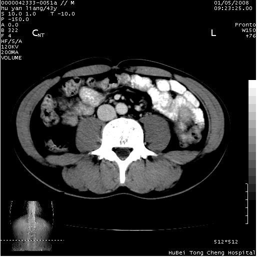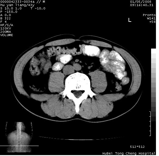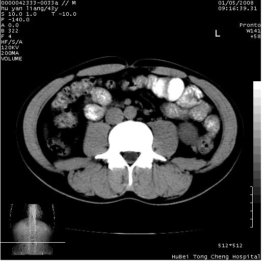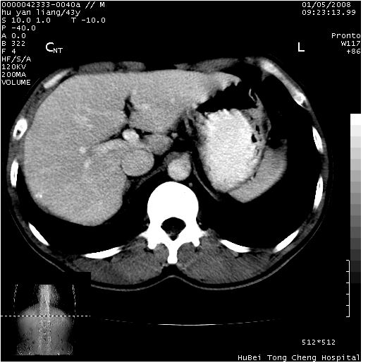 上中腹部ct轴位平扫+增强扫描(层厚10mm,螺距1.0,重建间隔10mm),图像如下: