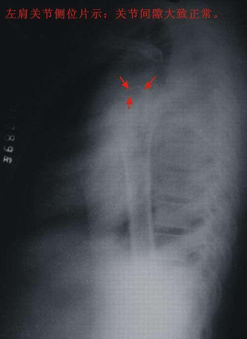 以下是引用卜一在2008-1-15 8:26:00的发言:[br]双侧肩关节解剖位时,双肩关节间隙增宽,但肱骨头及周边骨质 关节腔均未见异常。与骨科专家会诊结果,目前只能诊断:肩关节松弛症!