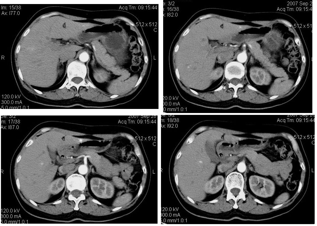以下是引用余辉在2008-1-20 21:16:00的发言:[br]有没有老师考虑是老腺瘤的,另外还有几个不明结节,可能是肝血管瘤
