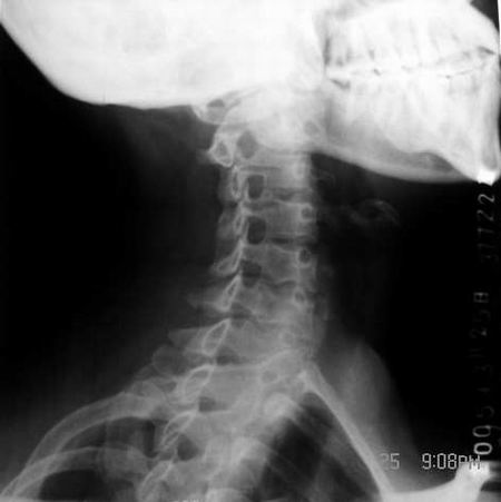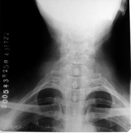 谢谢向医生,本人以为椎前缘类圆形透光区存在“问题”,但现在想可能因投照关系,横突相重所致。[emb18]