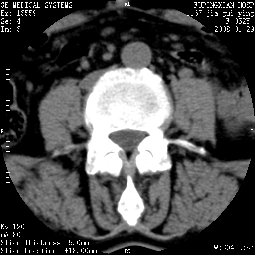 以下是引用zhangzhongshou在2008-1-29 19:34:00的发言:[br]1、腰椎退行性变。[br]2、硬膜囊内钙化,多考虑蛛网膜炎所致粘连钙化