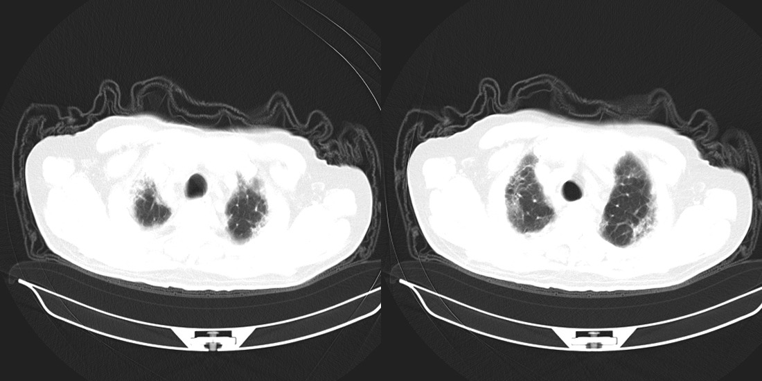 以下是引用随光逐影在2008-2-15 11:10:00的发言:[br]1)慢性支气管炎并肺部感染。2)肺间质纤维化。3)肺气肿(多发性肺大泡形成)。4)肺动脉高压。