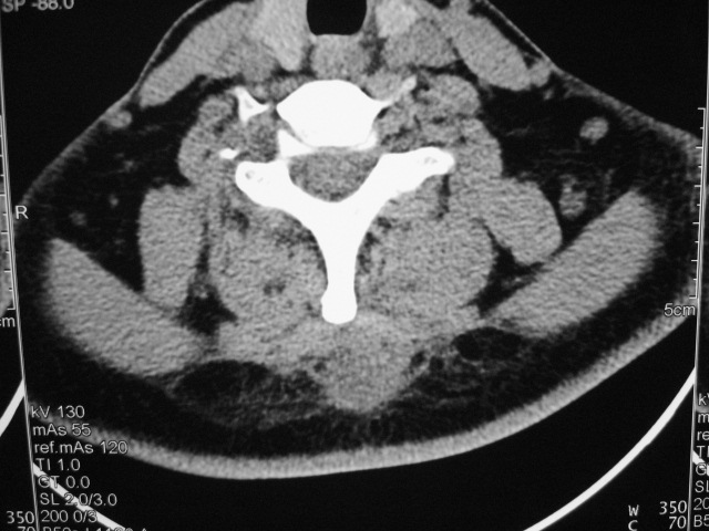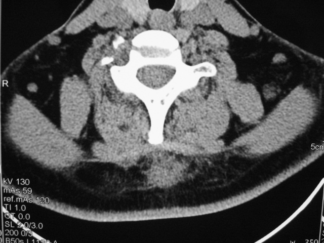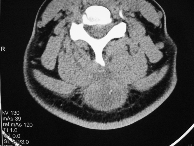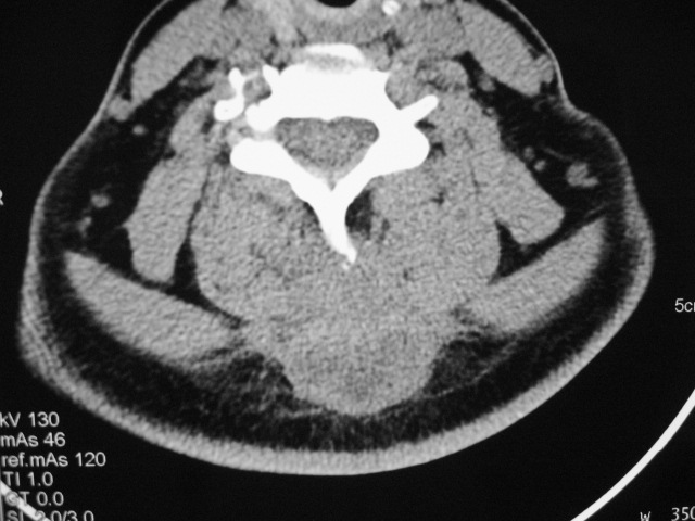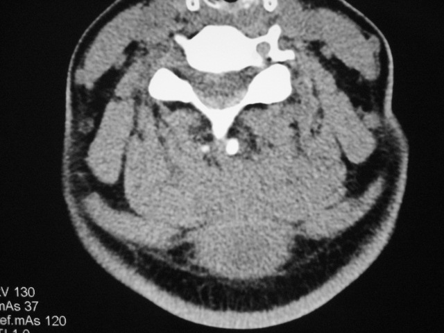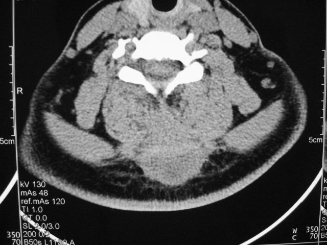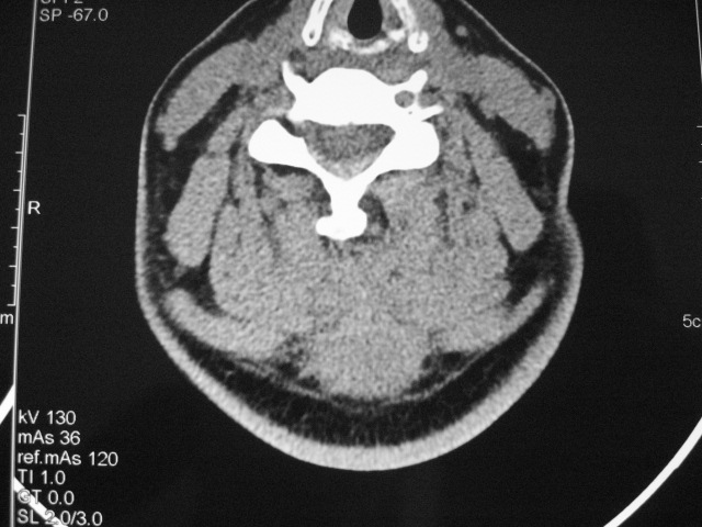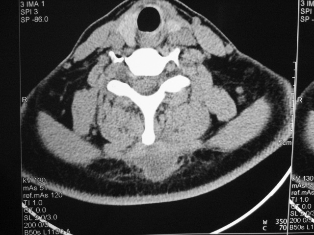 以下是引用dyqct在2008-2-26 14:48:00的发言:[br]考虑:起源于项韧带的硬纤维瘤可能性大,建议活检进一步检查。
