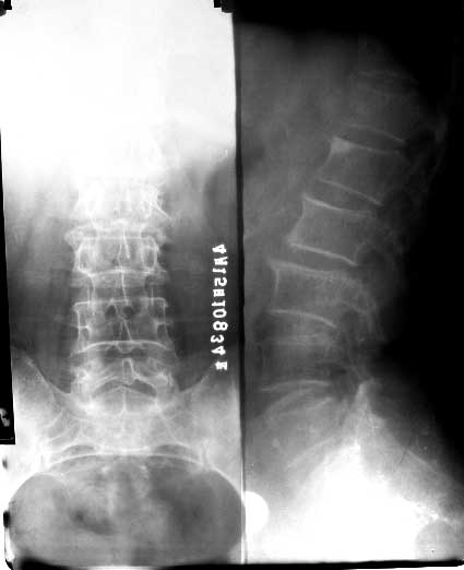 l1椎体前上部致密影,为典型的致密性骨炎。此外,该例尚有腰椎骨质增生改变。