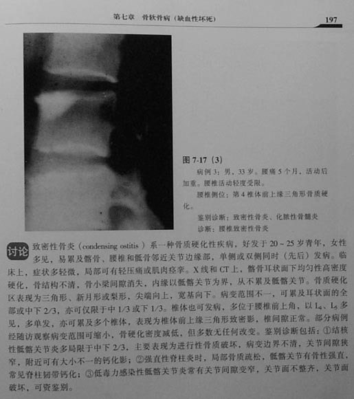 只见过髂骨骶髂关节附近的致密性骨炎,忽略了椎体的病变.多谢各位