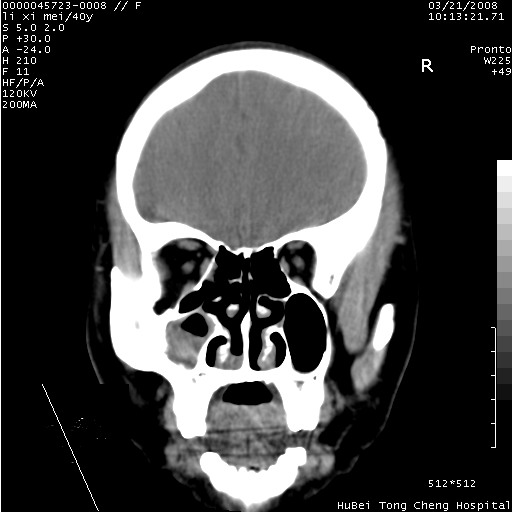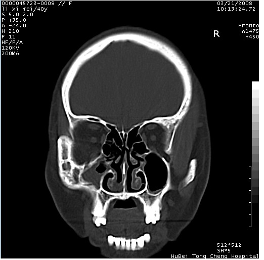 以下是引用qiuleiyu在2008-3-21 21:46:00的发言:[br]支持;上颌窦炎,窦内高密度影,建议横断位观察与上颌窦前壁关系。除外骨源性病变。