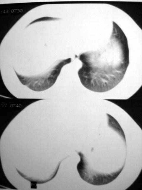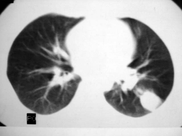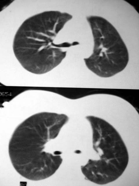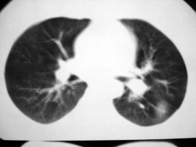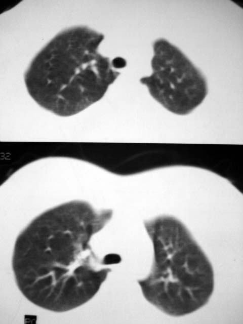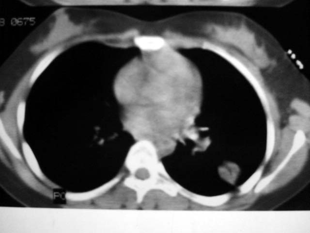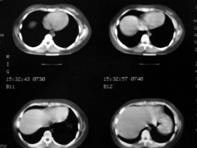 首先要说ct机太差,片子质量不佳,一定是2秒以上机器的作品!其次ct技师需进一步培训,象这种情况就应该针对病灶部位做薄层或高分辨扫描。不过从上传影像看,患者年轻、病灶周围没卫星灶倒支持炎性假瘤诊断,不过象这种部位也有可能是叶间包裹性积液可能。只是ct机太、太差,很难诊断,如一秒机扫描出来90%可直接诊断,有必要时可结合矢状位三维重建。所以要我说建议患者在亚秒(至少是1秒)机上重扫十分有利于正确诊断。